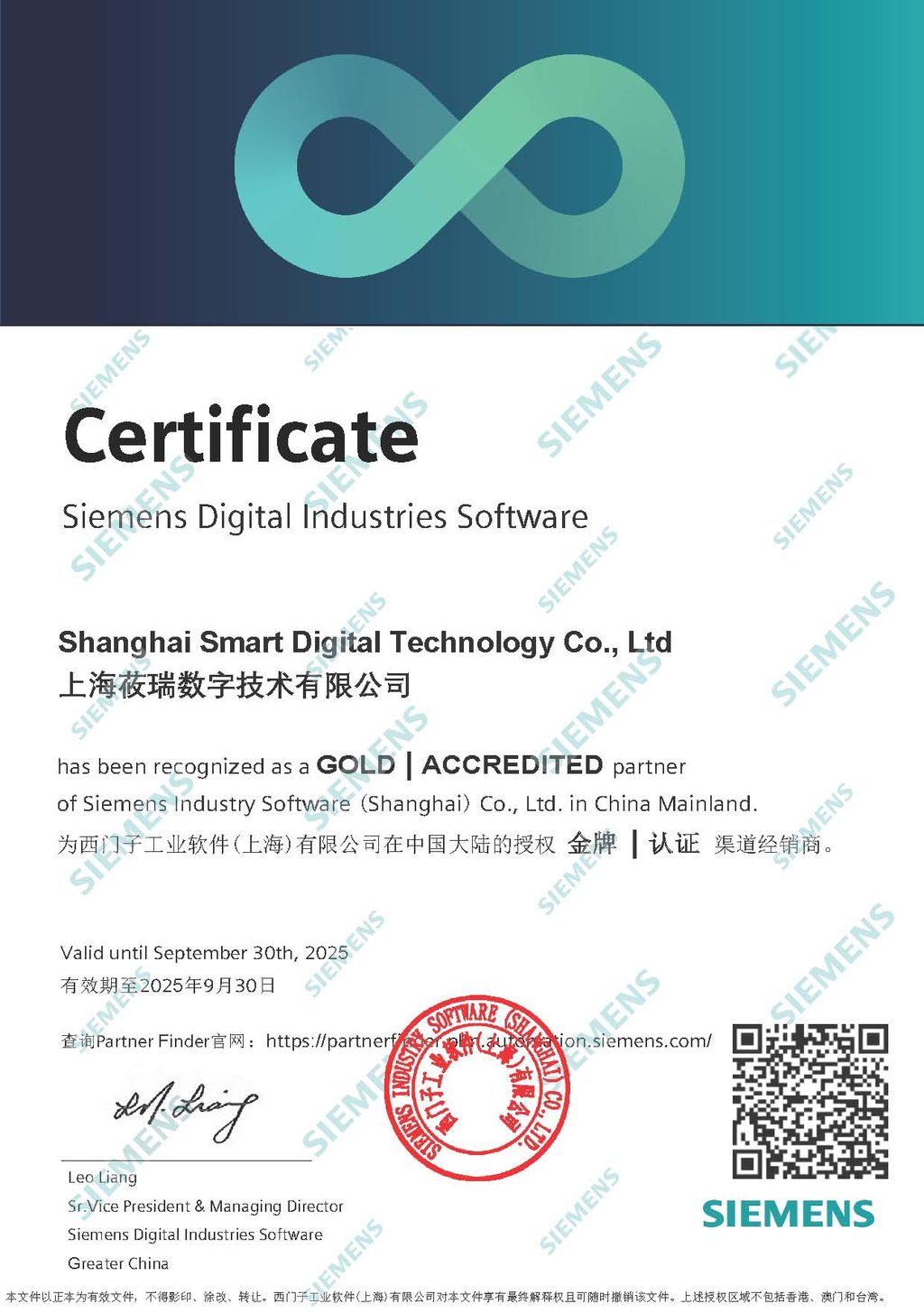 近日,莜瑞数字收到了西门子授权颁发的2024年度“Gold|专家”证书,效期至2024年9...